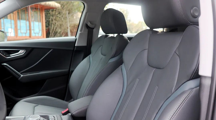 最后再说说乘坐体验,试驾车辆采用了真皮包裹的座椅,内部填充物软硬适中,入座之后的舒适性和包裹性都不错,而且试驾车辆还提供了前排电动座椅调节。至于后排,尽管轴距进行了加长处理,但是受制于车辆定位的原因,其后排腿部空间也不算宽敞,只能说是够用,毕竟全新奥迪Q2L的目标客户是小年轻,他们对于后排的乘坐要求不会太高。