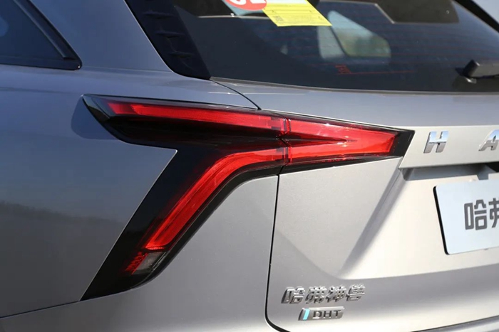 车尾则相对柔和,并没有采用了时下流行的贯穿式尾灯设计,反而采用了极具辨识度的希腊字母伽马(γ)造型设计,点亮之后呈现出粒子流光的特效。同时,在车尾上部还采用了双尾翼设计,不仅带来强烈视觉效果,而且还颇有运动气息。后车门左下角的DHT字样,表明了混动车型的独有身份。