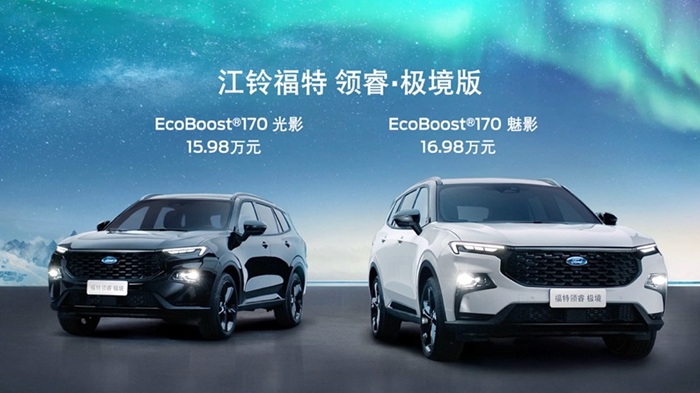 江铃福特领睿·极境版拥有EcoBoost®170光影及EcoBoost®170魅影两款版型,官方指导价分别为15.98万元和16.98万元,为拓展“人生的宽度”也追求“人生的亮度”的年轻用户而来。