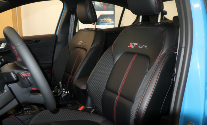值得一提的是,全新福克斯还提供了B&O音响,这对于一款售价在十几万的紧凑型家用轿车来说实属少见,不过也从另一方面反映出长安福特对于中国用户的偏爱。座椅的舒适度和柔软度都不错,实拍车型采用了红色的缝脚线并且还在椅背上还有“ST-Line”的专属刺绣,运动元素更浓。