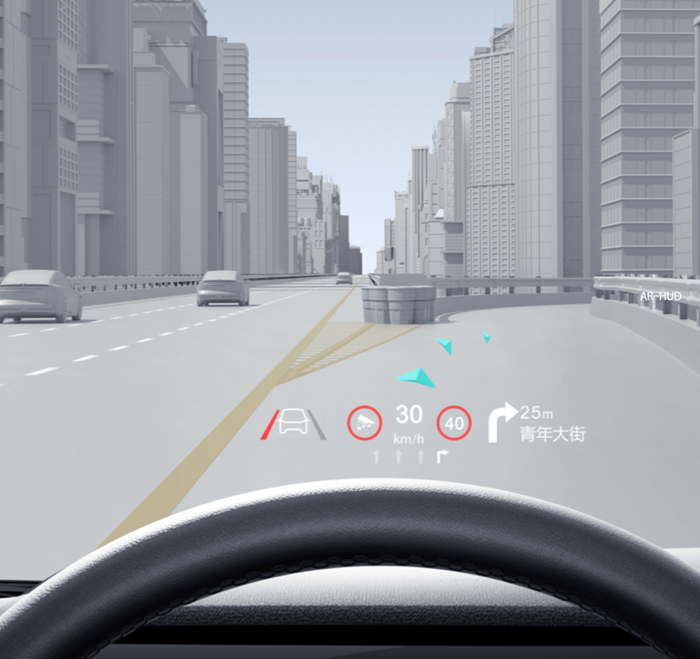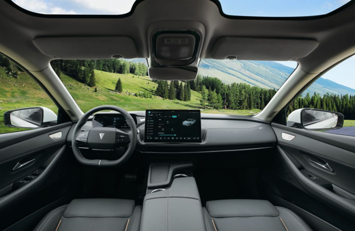 内饰方面,新车采用了全感官数字座舱,黑色的主基调下配有银色饰件点缀,增强了车内的科技氛围,包括时下流行的全景天幕、无线充电等配置均有搭载,提升了出行的舒适性。而中控搭载的由AR-HUD抬头显示、可左右15度旋转调节的14.6英寸悬浮式中控屏、10.2英寸全液晶仪表组成的三屏设计,不仅看起来科技感十足,内置功能也相当丰富;可支持蓝牙/NFC无感入舱、3D全息人脸登录等功能,还将提供包含隐私模式、恒温座舱、小憩模式在内的10种全座舱情景模式,智能交互系统可根据当下车辆状态,自动推荐相关情景模式,一键启动,全仓响应。而AR-HUD抬头显示则脱离了简单的车辆行驶信息显示,还能与实景路况融合,让驾驶员能更清楚的了解前方路况以及导航信息。