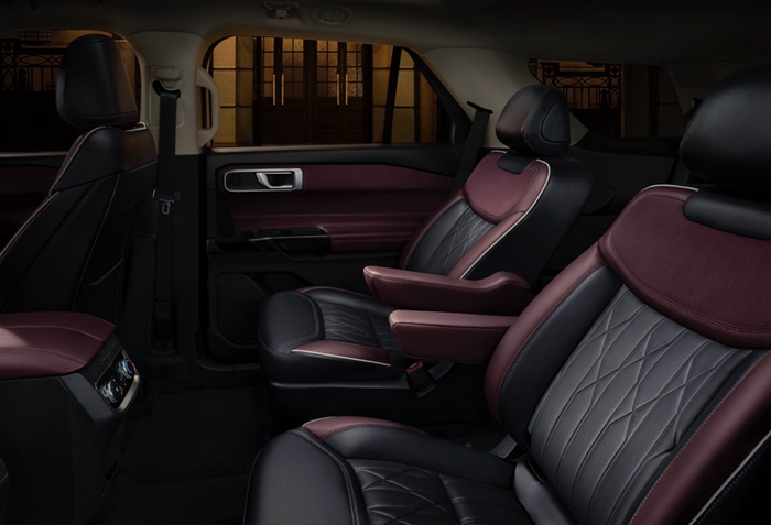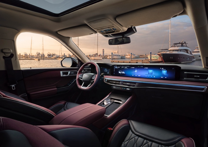 全新福特探险者的大气设计以“海洋”为灵感,巧妙借用了豪华游艇的风格,在遵循硬核阳刚设计线条的同时,进行了一系列本土化调整。车头连贯的大灯与进气格栅展现了“自信与实力”,突出力量感和运筹帷幄的视觉印象;超过5米长、2米宽的车身气势磅礴;车身同色处理的帆桅式C柱和隐藏D柱设计,营造出悬浮式车顶的视觉效果,大有豪华游艇之感;21英寸轮毂配备高性能倍耐力蝎子轮胎,彰显出豪华旗舰姿态。