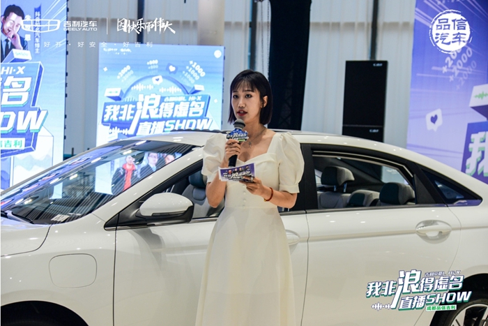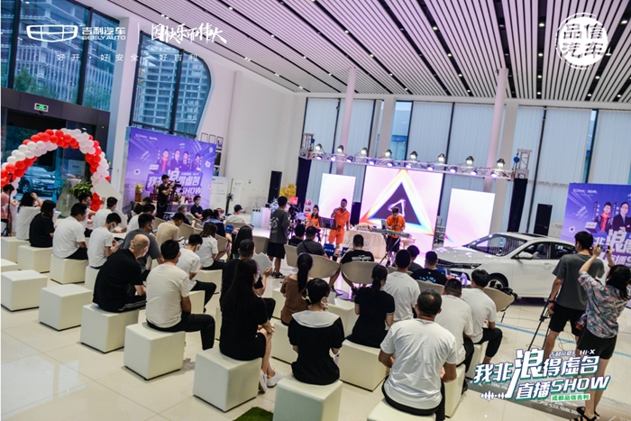 在精彩的乐队暖场表演之后,主持人向到场观众介绍了此次参与直播话题讨论的各位嘉宾:吉利汽车四川省总监荆海、四川广播电视台主持人李晶磊、太平洋汽车主编王锦鸿以及抖音知名汽车博主朱世恩。