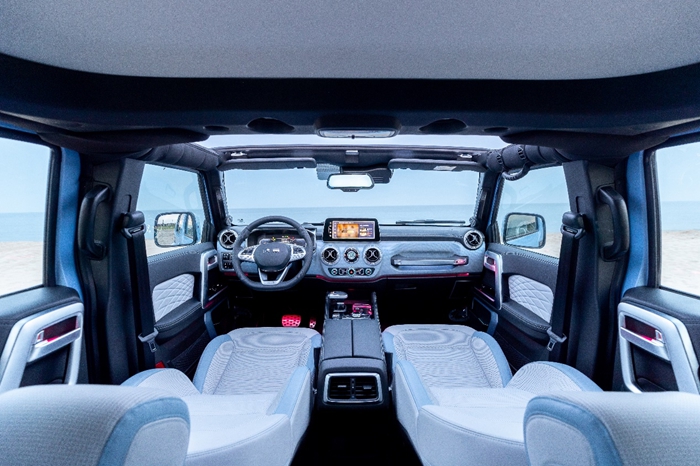 2023款BJ40刀锋英雄版进行了全新“智能”升级,配备了新一代智能网联车机、集成车载微信、腾讯随行、智能语音、悦野圈、QTA升级推送等功能,打通了智慧车联+悦野全的全场景生态。