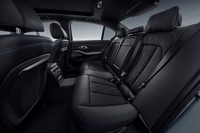 车尾设计营造精致的运动氛围。3D立体悬浮LED尾灯简洁雅致;18英寸轮毂,结合全新设计的后扩散器及多边形排气管,呈现硬朗的运动线条。新增摩天灰、海岸蓝的外观颜色,为新BMW 3系赋予更加年轻、动感的个性选择。