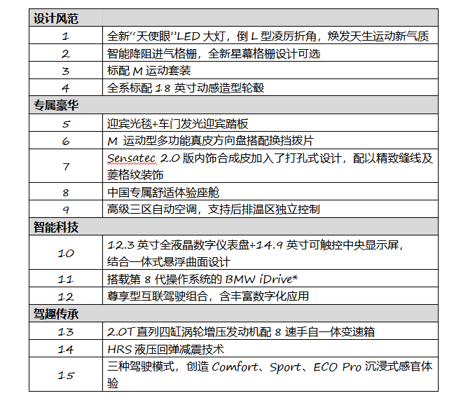 新BMW 3系以丰富的中国专属豪华配置和15项高价值标准配置,展现了宝马集团践行“家在中国”战略、秉持“中国优先”原则,用丰富、感性、创新的产品与高档服务不断满足中国消费者日益个性化的需求。