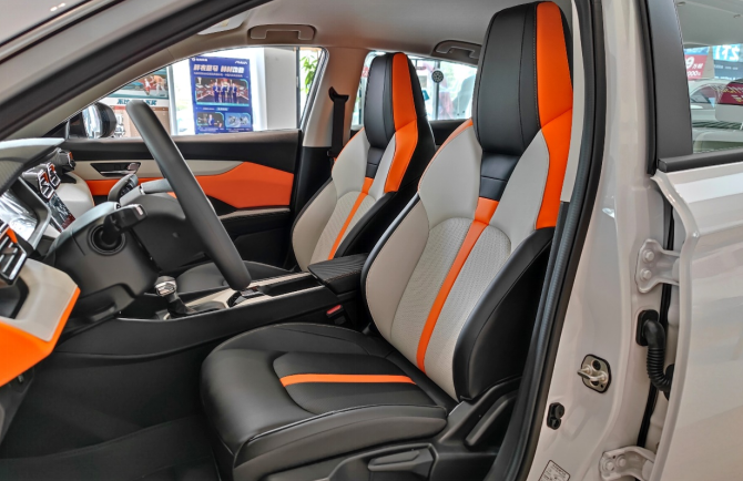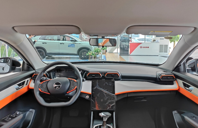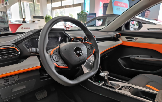 内饰方面,橙灰的双拼设计,呈环抱之势,一体式皮质打孔运动座椅,全新游戏手柄方向盘,以及同级唯一的13吋中控大屏,细节处处体现了电竞机甲运动基因,让驾趣更持久。