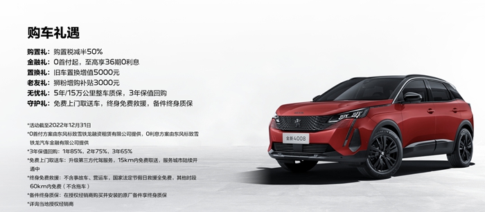 顺带说一下,目前东风标致全新4008炫夜版已经采用了官网直售模式,起售价17.07万元,完成线上订车的话,还可以享受购置税减半+5000元置换补贴+3年保值回购+5年/15万公里质保等,相当有惊喜。 (东风标致供图)