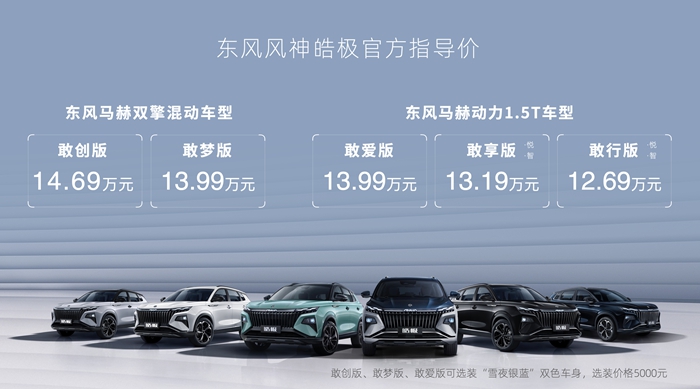 四川新闻网成都9月26日讯 9月26日,首款搭载东风马赫双擎混动系统的SUV东风风神皓极在万众期待中正式上市,并在原有的敢行版、敢享版、敢爱版、敢梦版车型基础上,全新推出混动满配车型——敢创版,将价格区间进一步扩大至12.69—14.69万元,并新增选装车身颜色“雪夜银蓝”大双色,进一步丰富用户选择。同时,多项购车权益,持续提升用户高价值用车体验;全面优化积分和成长体系的“皓友计划”也重磅发布,将助力广大车主价值共创,开启共创共赢的人车美好新生活。