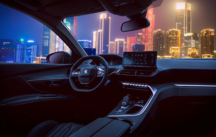进入车内,你可以看到全新4008炫夜版的入门车型有小幅赛车式方向盘、换挡拨片、主副驾电动调节座椅、可开启的全景大天窗、12.3英寸的全液晶仪表、10英寸触摸中控屏、定速巡航、倒车影像、PM2.5空气净化、Blue 2.0智能网联系统、语音助手、Carlife手机映射。总结起来就一句话,入门即高配,实现越级享受。