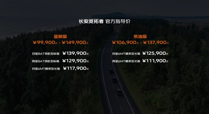 四川新闻网成都12月27日讯 自由探索,无限热爱!12月22日,探享明日皮卡——长安览拓者正式上市。新车全系标配2.0T动力,提供汽油和柴油两种动力版本,共计推出14款车型。其中,蓝鲸版官方指导价为¥99,900元- ¥149,900元;柴油版官方指导价为¥106,900元- ¥137,900元。这款集合长安全球研发优势打造的重磅皮卡车型,开创了全场景皮卡新品类,正掀起中国皮卡新潮流。