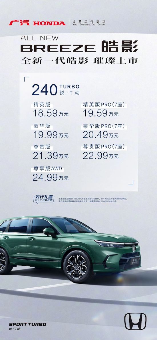 四川新闻网成都12月28日讯 12月23日,“激享高能Will Shines Brightly”全新一代皓影(ALL NEW BREEZE)上市发布会举行,定位为“锋耀智感SUV”的全新一代皓影(ALL NEW BREEZE)焕新而来。新车集Honda最前瞻技术于一身,为满足中国年轻消费者精心打造,共分为7个车型版本,市场指导价为18.59万-24.99万元。