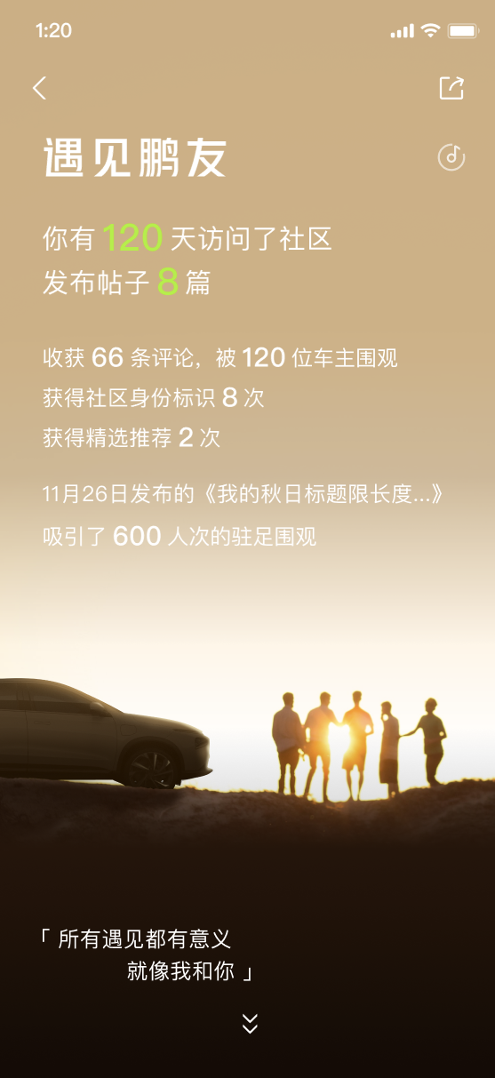 当然,你还喜欢在社区与小鹏大家族的兄弟姐妹们共同探讨更多用车的可能性,分享与爱车的精彩日常,积极参与社区活动,书写了专属于你的2022用车记录,还提供了许多有价值的用车小妙招,给大家的生活带来了更多的期待!