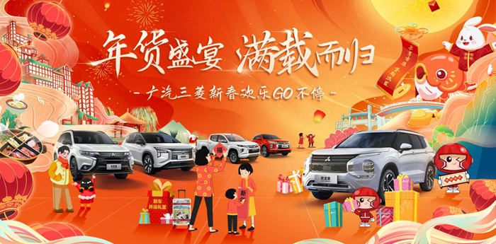 抢年货,造年味,赢福礼,试新车!广汽三菱的新春特惠活动,承载着新一年最美好的希冀和祝愿。消费者不论选购全新欧蓝德还是L200都能获得众多权益与礼遇,赢取“豪”不妥协的专属订车、购车礼(详情请咨询各地经销商)。加上广汽三菱同步推出的“广汽三菱新春欢乐GO不停”主题电商活动,集齐了盲盒幸运签、签出新车礼,0元试驾抽新春蟹礼/新潮文创礼试驾好礼,以及留资参与拆红包赢新年礼等等,多重下订好礼等你来抽!