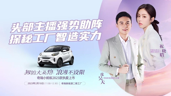 四川新闻网成都2月10日讯 领略智造不凡魅力,演绎浪漫轻奢格调。2月10日,在奇瑞新能源二期工厂,奇瑞新能源强势联合五千万粉丝大咖祝晓晗,打造了一场精彩时尚的探秘工厂之旅,实力助阵奇瑞小蚂蚁2023款C位出道!万千网友嗨爆全场,共同见证“全球精品纯电小车冠军”奇瑞小蚂蚁2023款执爱上市,更有神秘明星倾情助阵 强势破圈吸粉无数!爱的大礼物,让浪漫永不设限。