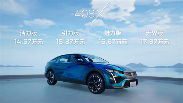 四川新闻网成都3月23日讯 3月21日,标致全球重磅车型408X在中国正式开启预售,共推出4款车型,预售价分别为活力版14.57万元、引力版15.37万元、魅力版16.67万元、无界版17.97万元。408X同时开放幻蓝、炽红、劲灰、炫白、飒黑5种外观车色,目前可通过东风标致APP和东风标致索肖社区小程序抢先预订。