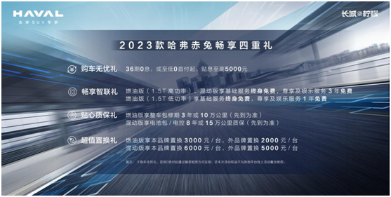 与此同时,为让更多年轻用户购车无忧,2023款哈弗赤兔贴心准备畅享四重礼,上市即有惊喜: