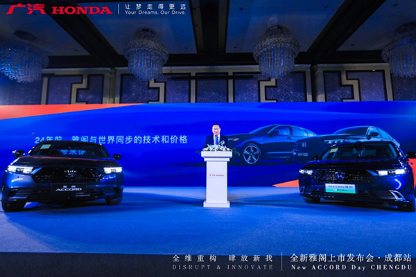 四川新闻网成都5月26日讯 5月25日,广汽本田全新雅阁·全维重构·肆放新我上市发布会-成都站于成都华尔道夫酒店圆满落幕。全新雅阁(ALLNEWACCORD)锋芒上市,进阶强电智混科技,智能电动化时代新旗舰,首搭第四代i-MMD双电机系统,有点没电快省稳不变;作为中国汽车市场最具影响力的车型品牌之一,雅阁品牌国内累计销量已超320万辆,全新雅阁凝聚广汽本田25年“质造+智造”底蕴,荟萃Honda最新科技,强化企业电动化产品矩阵,加速新能源进阶之路。
