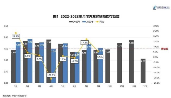 中国经济网9月11日讯(记者 郭跃)昨日,中国汽车流通协会发布8月“汽车经销商库存”调查结果:8月汽车经销商综合库存系数为1.54,环比下降9.4%,同比上升5.5%,库存水平在警戒线以上。