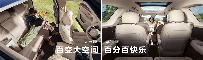 问界新M7充分考虑家庭出行需求,大五座拥有同级领先的车内有效空间,长度达到3338mm,每个座位都很宽敞。后备箱纵深1100mm,标准容积可达686L,轻松容纳12个20英寸登机箱(测量方法符合GB/T19514-2004/ISO3832)。在二排座椅放倒与后备箱连通后,最大纵深拓展至2051mm,可形成1619L( 后备箱容积测量方法符合 GB/T19514-2004/ISO3832,仅适用于五座版)的装载空间,轻松容纳30个20英寸行李箱,并可切换2米大床等多种模式,轻松实现双人躺平,配合后备箱52L储物暗格,极致的空间效率满足了家庭用车的装载需求,无论是一个人的远方、两个人的浪漫、还是一家人的幸福,都能轻松装下。