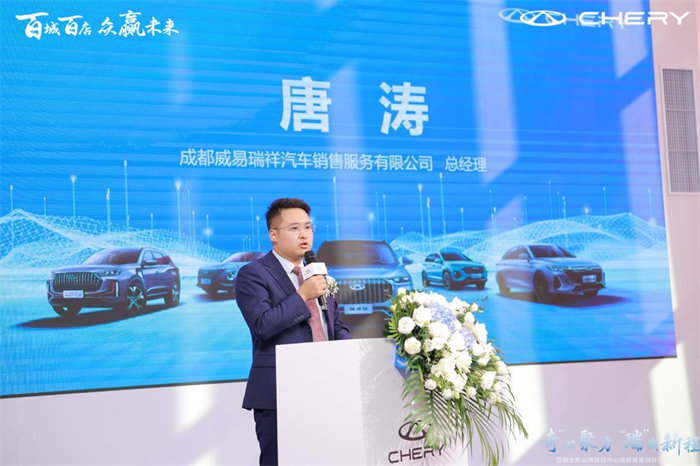成都威易瑞祥汽车销售服务有限公司总经理唐涛在致辞中表示,今天是值得纪念的一天,在奇瑞汽车的引领下,奇瑞汽车威易瑞祥体验中心店经过积极筹备,终于迎来了正式开业这一刻。