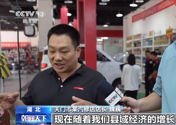 在湖北省天门市一家已开设新能源汽车动力电池维修和美容业务的途虎养车工场店内,一位车主正在对爱车进行个性改装。他表示,希望他的爱车能和别人不一样,买了之后一定要来做个性化装饰。店长魏巍自2019年加盟途虎养车后,目前在天门已开了4家途虎养车工场店。魏巍说:“现在随着当地县域经济的增长,新能源车车主对车的外观要求也越来越高。现在光车衣改色,店里基本上每个月都要贴35台以上。”