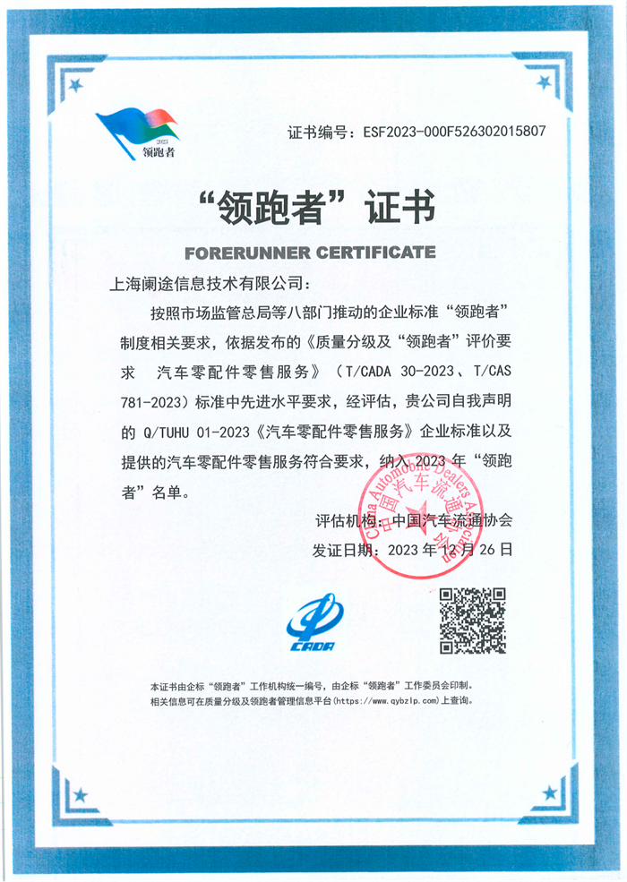企业标准“领跑者”项目由国家市场监督管理总局等八部门共同组织开展,旨在通过高水平标准创建并培育一批致力于高质量发展且具有创新能力的行业领军企业,让行业有标准、商家有标尺、消费者有感知。汽车零配件流通领域今年首次被列入并首批颁证。