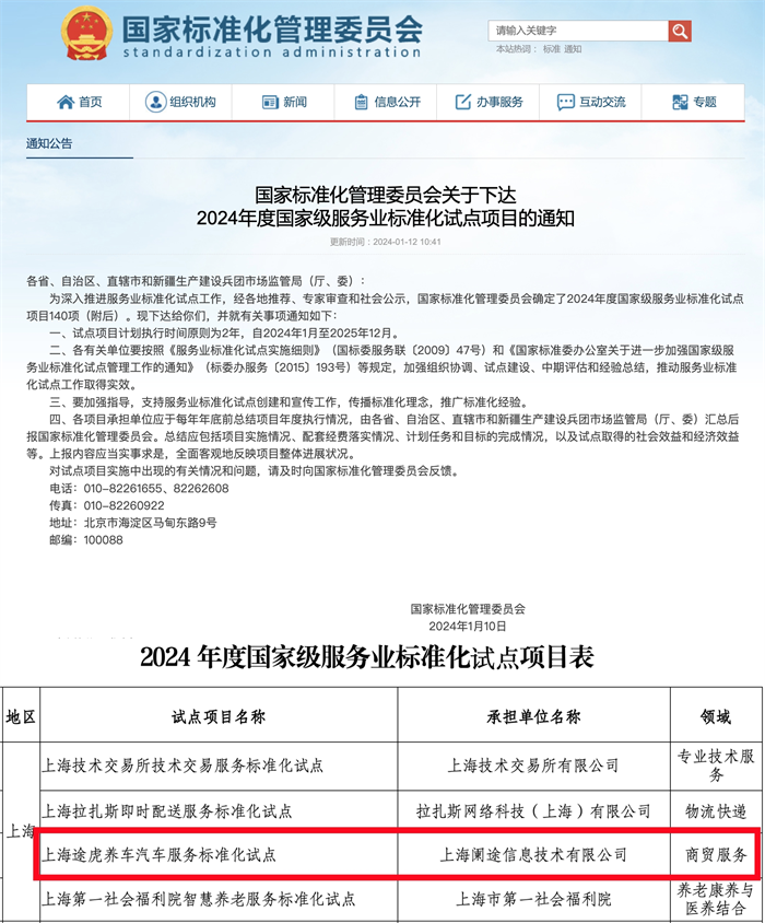 四川新闻网成都1月23日讯 近日,国家标准化管理委员会公布2024年度国家级服务业标准化试点项目名单,途虎养车入选。这是继荣获国家级企业标准“领跑者”称号之后,途虎养车在汽车服务标准化方面获得的又一荣誉。