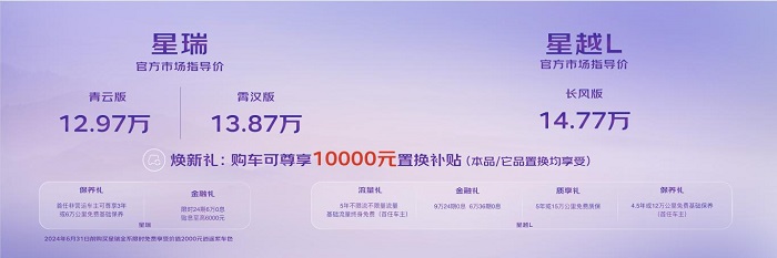 同时,基于SUV用户对多样化动力需求的强烈呼声,星越L2.0TD+7DCT长风版和星越L智擎星云版也加新而来,以更优的价位选择、更高的版型配置,全面满足更多用户对于驾控性能、经济节能的不同喜好和高价值体验需求。