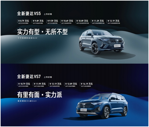 此外,本次车展上全新捷达VS5和VS7以全新差异化设计语言璀璨上市,追求“各美其美,美美与共”。全新捷达VS5进化为“实力有型 无所不型”的十万级德系运动SUV,上市价格为8.79-12.19万元。全新捷达VS7焕新为有里有面、兼具实力的德系精致大五座SUV,上市价格为10.79-14.19万元。