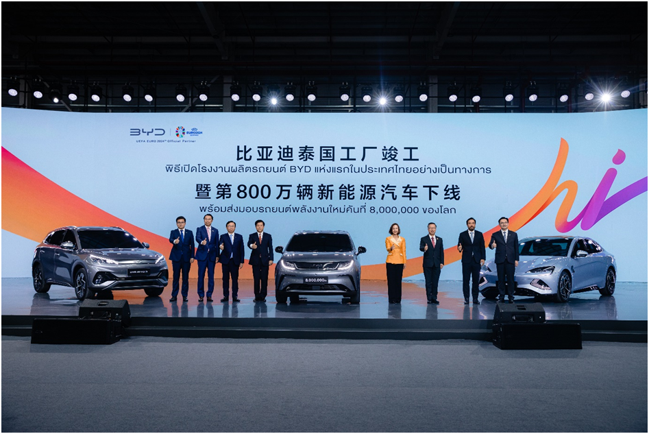 比亚迪泰国工厂竣工暨第800万辆新能源汽车下线现场图